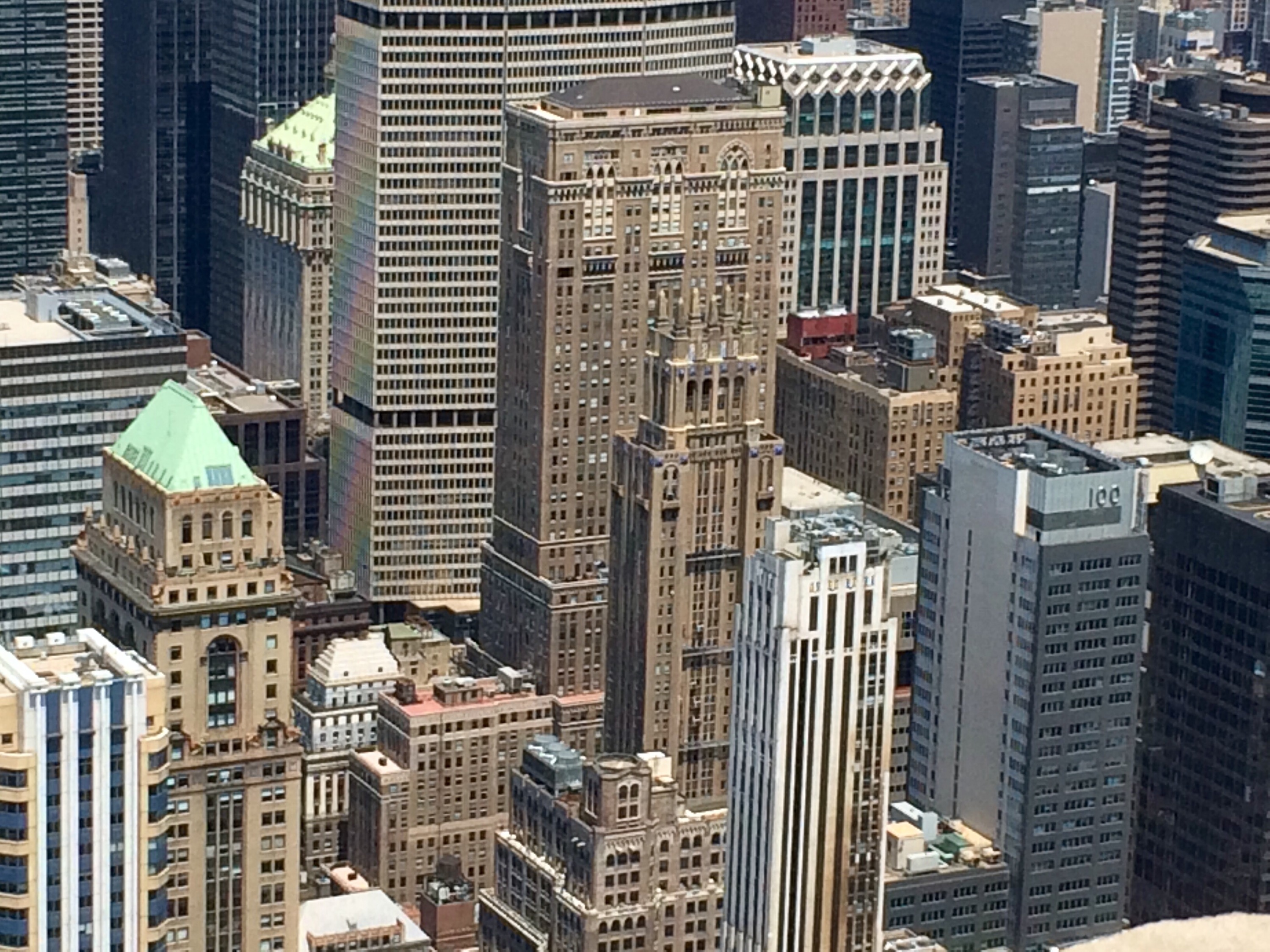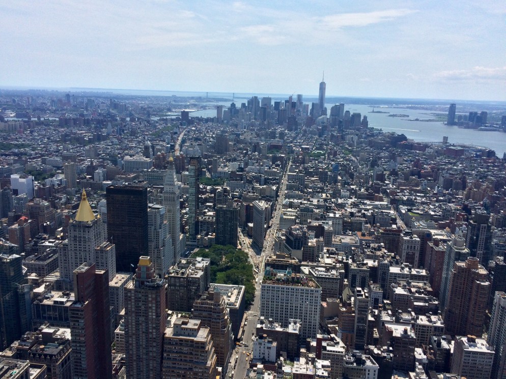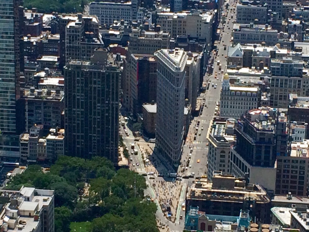 Blick zur Südspitze Manhattans … das hohe Gebäude ist der Freedom Tower … in der Mitte des Bildes Flat Iron Building