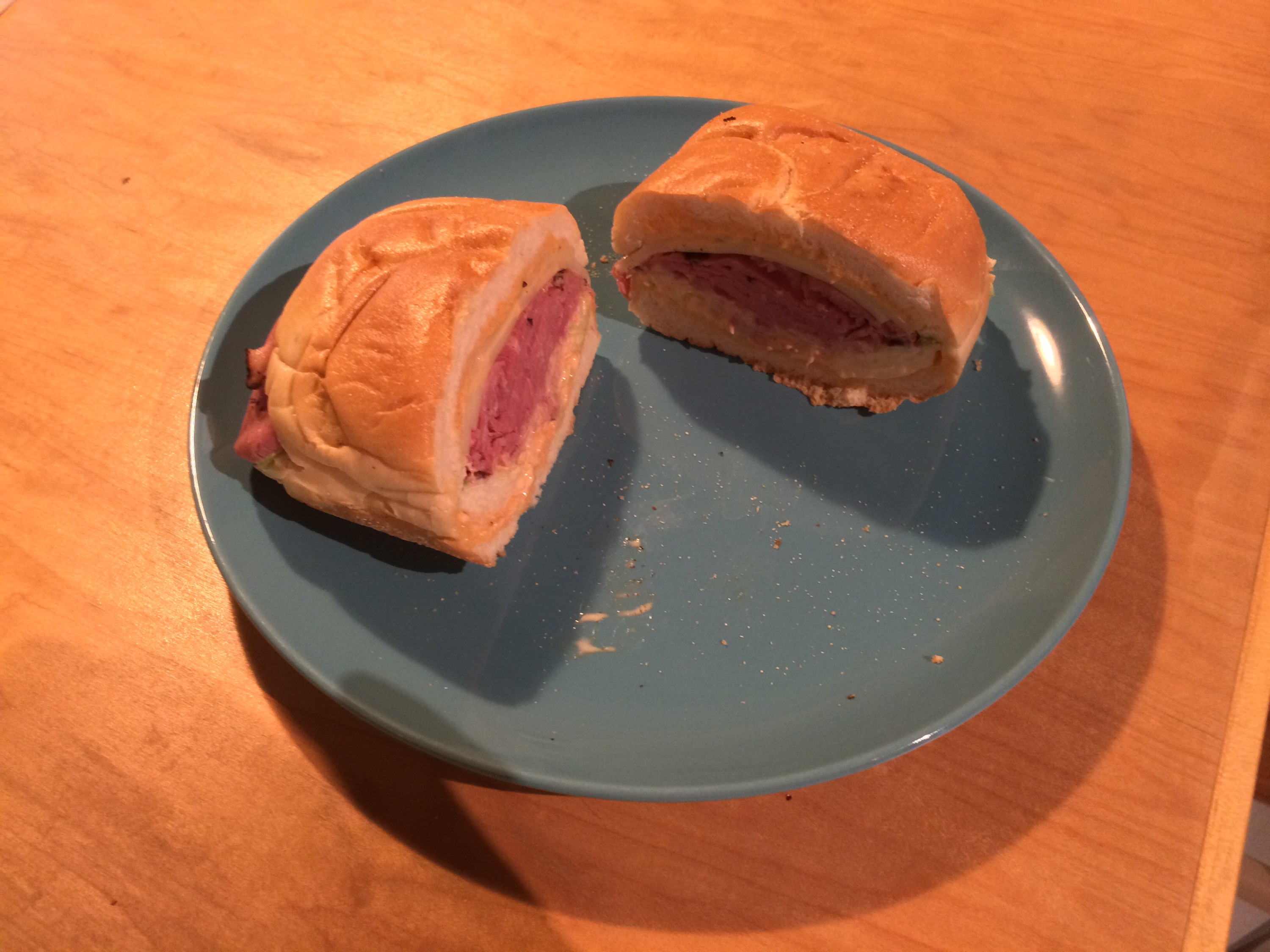 Auf dem Weg zurück ins Appartement entdeckten wir seitlich der Bedford Avenue einen Laden, der frische Pastrami Sandwiches macht und nahmen zwei mit für später. Hinter diesen Sandwiches waren wir schon die ganzen Tage her … die besten gibt es wohl bei „Katz‘ Delicatessen“ …