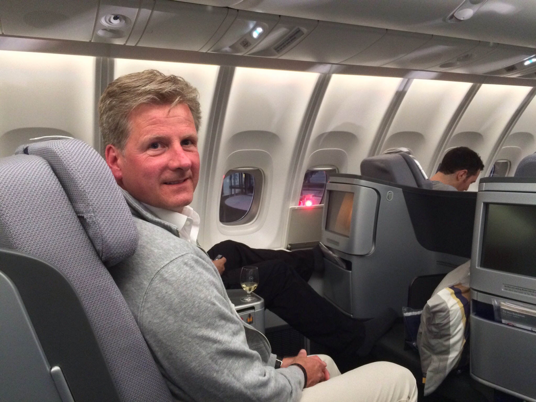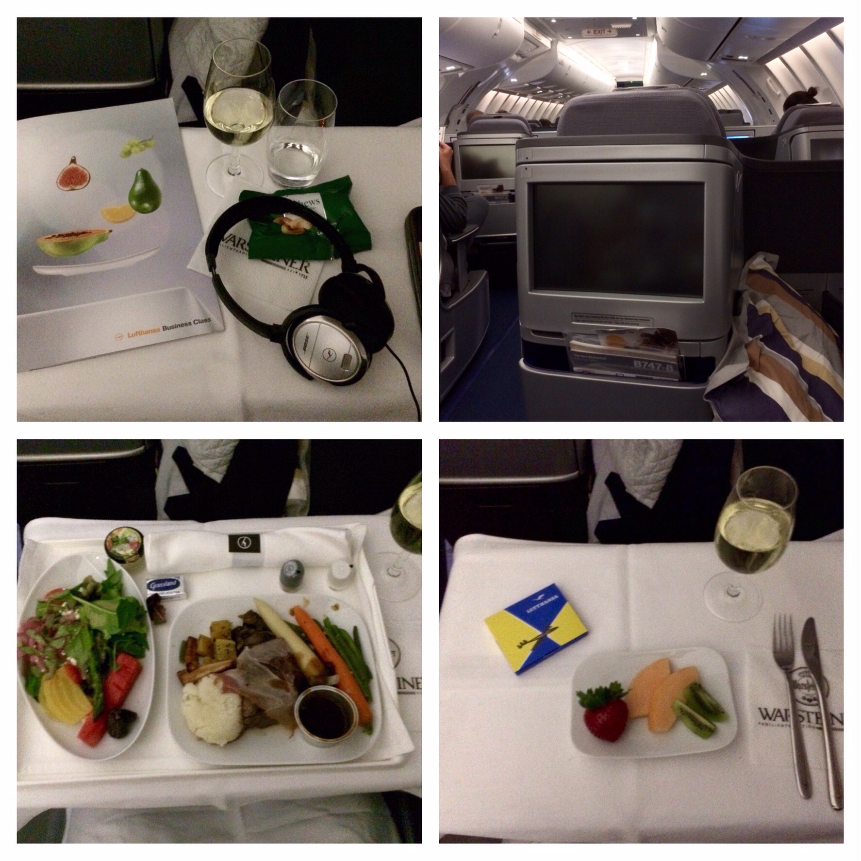 An der Maschine angekommen, wurden wir gleich ins Oberdeck geleitet … wir saßen zwar nicht zusammen, aber wir hatten nebeneinander liegende Gangplätze. Alles war perfekt … Essen a la carte … Stephan bekam nicht nochmals ein veganes Essen  ;-)) … wir konnten es uns zum Schlafen richtig gemütlich machen in unserem Bett ;-)) … und dieser Platz … und diese Beinfreiheit !!! Eine sehr angenehme Art des Reisens. Das Essen und der Wein waren sehr gut, das Frühstück später auch, ebenso das Entertainmentsystem mit Kopfhörern von Bose … toller Sound und sie blenden alle Geräusche innerhalb der Maschine komplett aus.