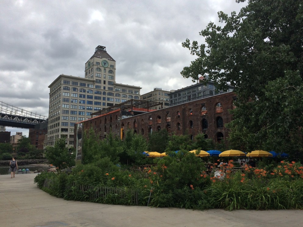 Also ging es zunächst mit unserer geliebten East River Ferry bis DUMBO … dem Viertel am Fusse der Brooklyn Bridge auf der Brooklyn Seite … es ist sehr interessant, es wird viel gebaut … hoffentlich verliert Brooklyn nicht seinen Charme durch diese ganzen Sanierungen 😦