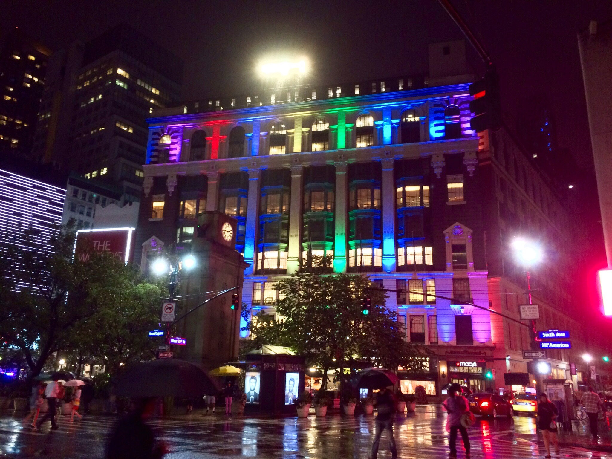 Gestern beschloss der oberste Gerichtshof der USA, dass die Homoehe nun in allen Bundesstaaten Gültigkeit hat. Das weiße Haus in Washington, der Freedom Tower in NYC und auch Macy’s werden dafür in den Regenbogenfarben angeleuchtet … es sieht toll aus … und es ist ein schönes Gefühl 😄 Da sind wir mal gespannt, wie ausgelassen die Menschen morgen auf der Parade zum Gaypride hier in New York feiern werden … wir sind gespannt … und natürlich dabei !!!