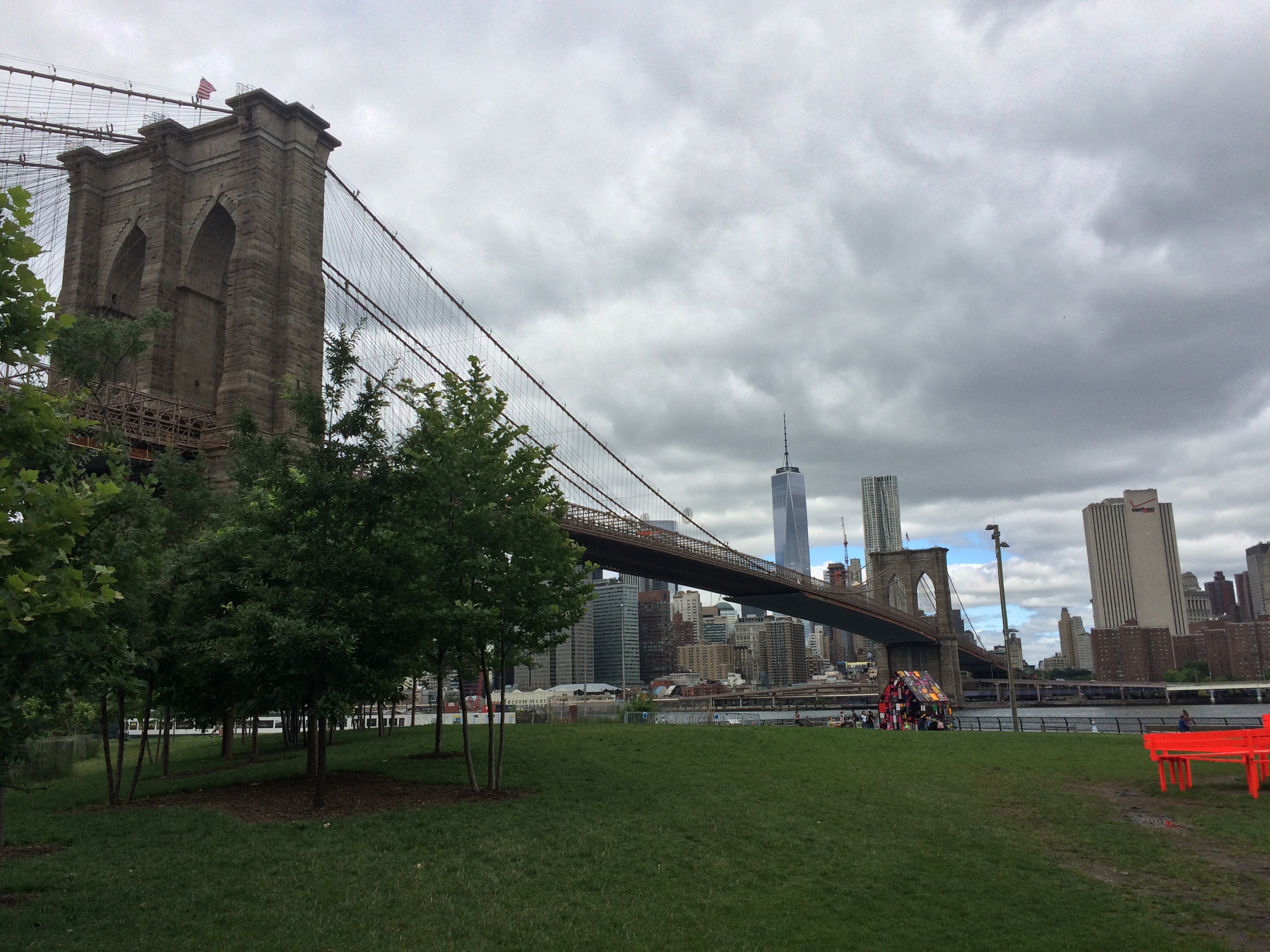 Also ging es zunächst mit unserer geliebten East River Ferry bis DUMBO … dem Viertel am Fusse der Brooklyn Bridge auf der Brooklyn Seite … es ist sehr interessant, es wird viel gebaut … hoffentlich verliert Brooklyn nicht seinen Charme durch diese ganzen Sanierungen 😦