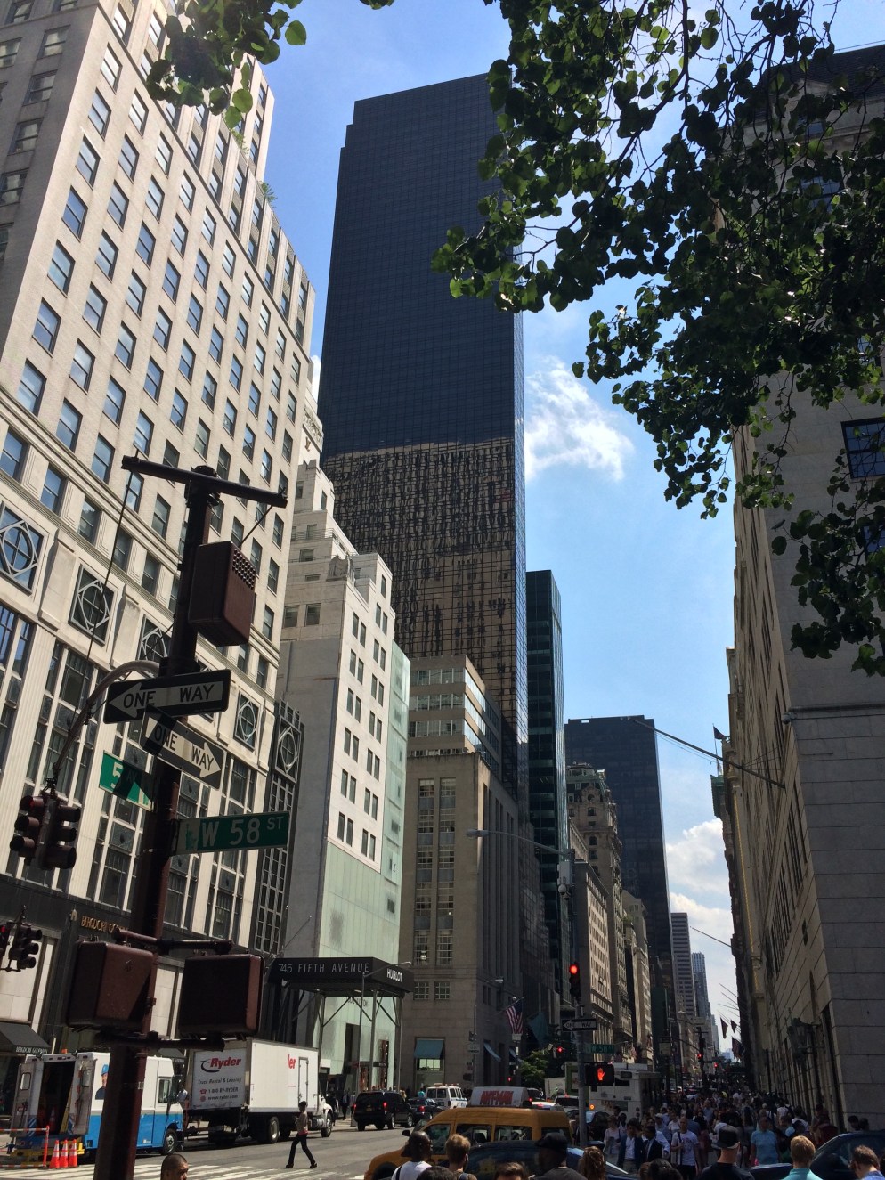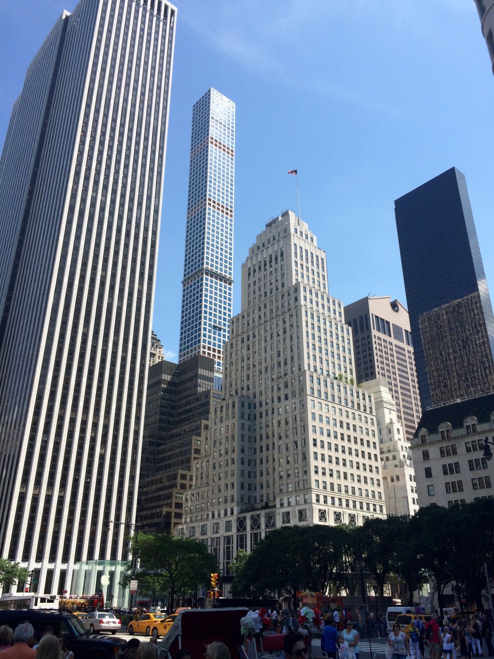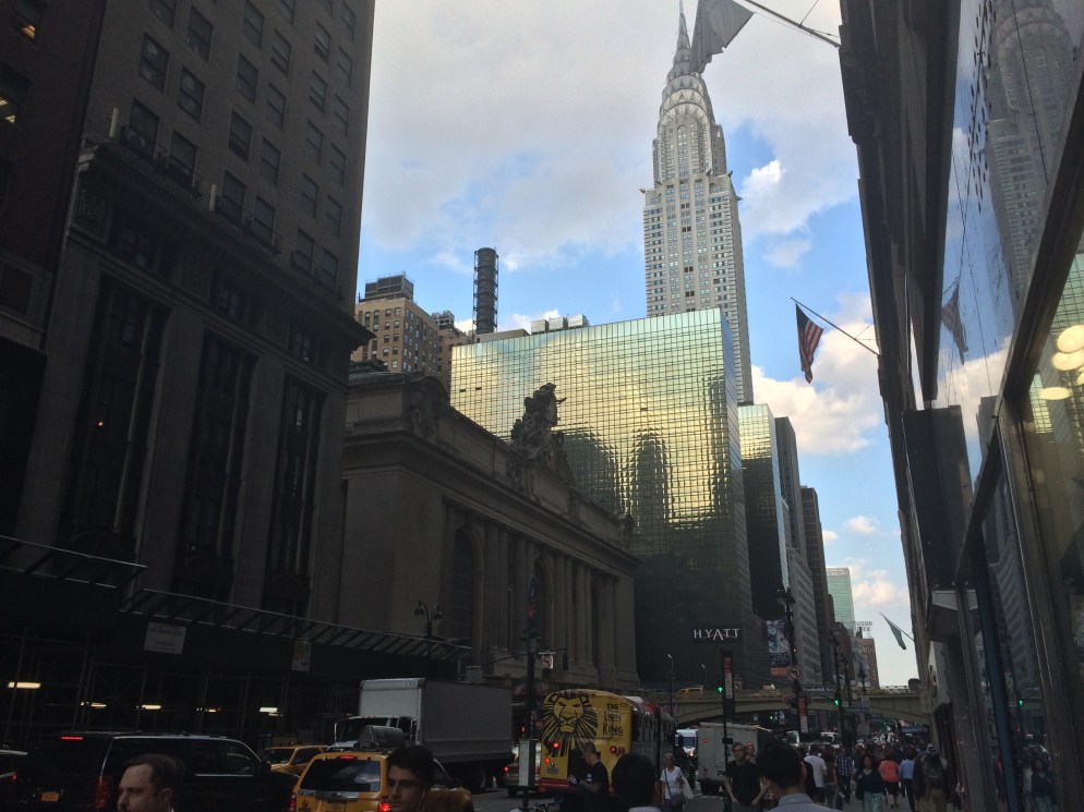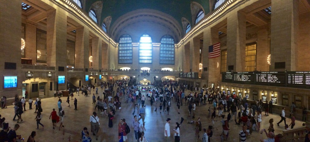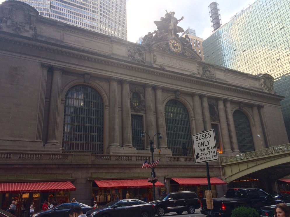 Den Abschluss unseres heutigen Tages bildete Grand Central Terminal, der größte Bahnhof der Welt … bezüglich der Anzahl der Gleise. Der Kopfbahnhof hat 44 Bahnsteige, an denen 67 Gleise enden. 41 in der oberen und 26 in der unteren Ebene. Die große Halle, 143 m lang und 45 m hoch, wird überdacht von einem künstlichen Sternenhimmel. Die große Uhr am Portal misst 4 m Durchmesser und wir eingerahmt von Minerva, Merkur, Herkules und dem amerikanischen Adler. Die Uhr und der ganze Bahnhof wirken neben den Wolkenkratzern ganz schön klein … und alle Uhren gehen 2 Minuten vor, damit alle Reisenden am Ende doch noch ihren Zug bekommen 😉😄