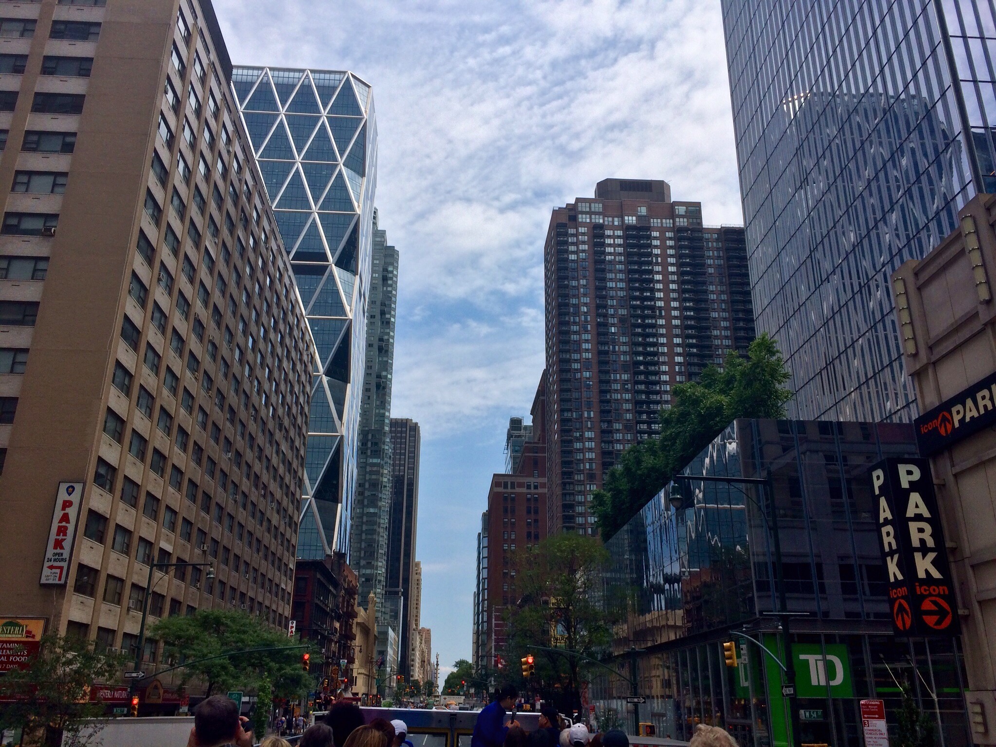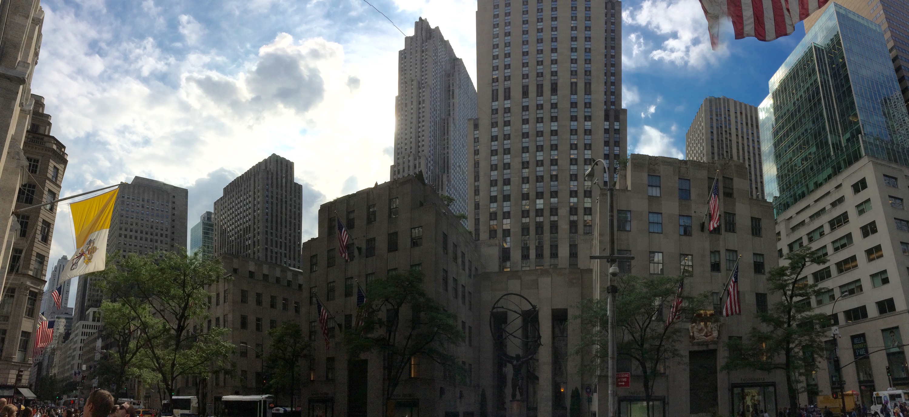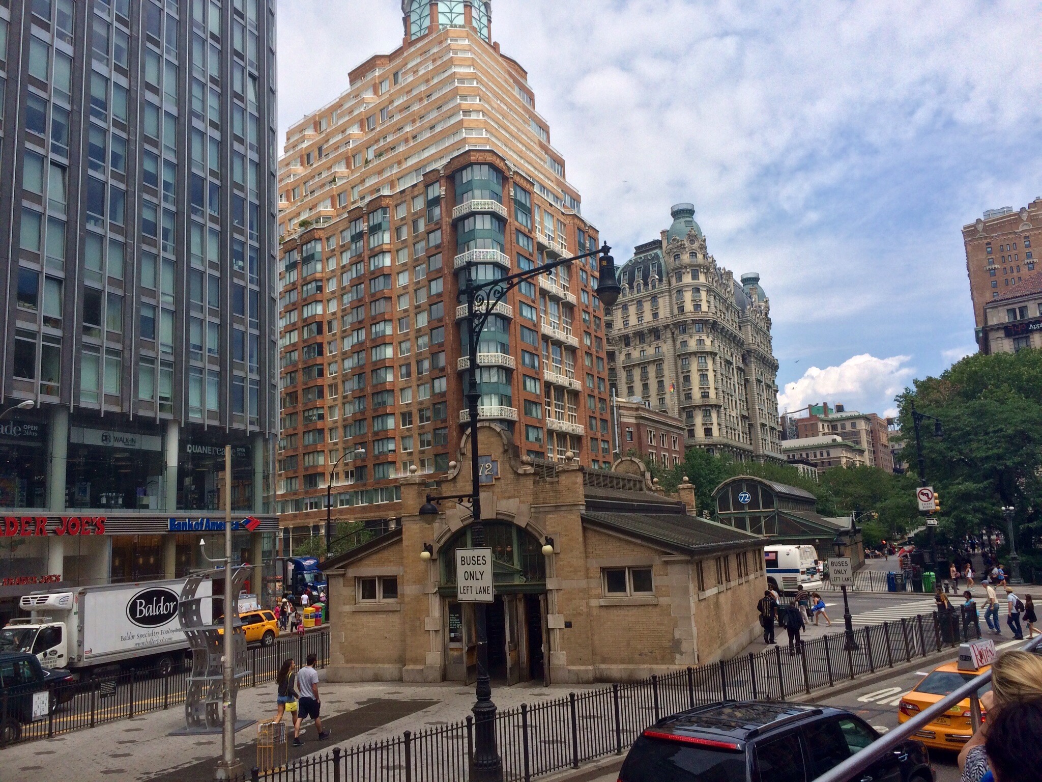 Den Abschluss unseres heutigen Tages bildete Grand Central Terminal, der größte Bahnhof der Welt … bezüglich der Anzahl der Gleise. Der Kopfbahnhof hat 44 Bahnsteige, an denen 67 Gleise enden. 41 in der oberen und 26 in der unteren Ebene. Die große Halle, 143 m lang und 45 m hoch, wird überdacht von einem künstlichen Sternenhimmel. Die große Uhr am Portal misst 4 m Durchmesser und wir eingerahmt von Minerva, Merkur, Herkules und dem amerikanischen Adler. Die Uhr und der ganze Bahnhof wirken neben den Wolkenkratzern ganz schön klein … und alle Uhren gehen 2 Minuten vor, damit alle Reisenden am Ende doch noch ihren Zug bekommen 😉😄